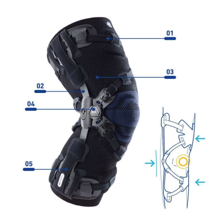 The GenuTrain OA’s innovative relief and stabilization system gives you back an important level of quality of life. Its straps surround the knee in a figure 8, allowing them to relieve the painful area on the side of the knee. They reduce pain and, together with the joint splint, stabilize the entire knee.